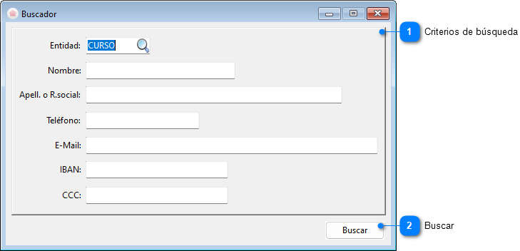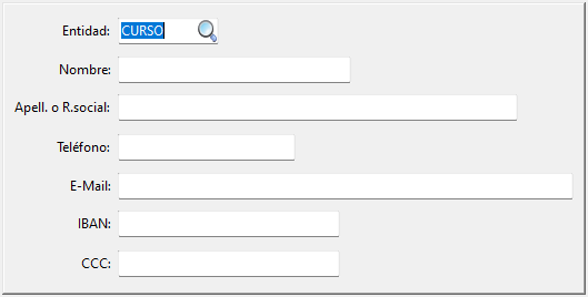 Si un campo se deja en blanco, excepto el código de la entidad (que indicará que se desea buscar en todas las entidades), significará que no se desean realizar búsquedas por el mismo.