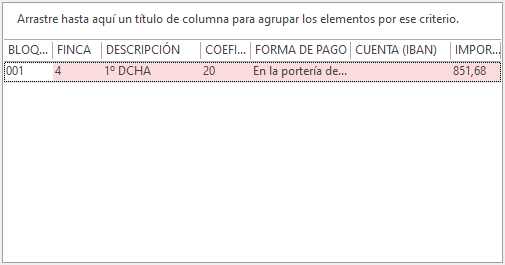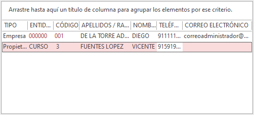 ¿Sabía que puede pulsar en las celdas que se visualizan con un color diferente para consultar datos ampliados sobre el dato concreto de la celda? Por ejemplo, usando como ejemplo la captura de pantalla, puede acceder a los datos de la empresa 000000, de la comunidad CURSO, del cliente 001 y del propietario 3. |