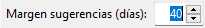 El "Margen sugerencias (días)" entra en juego a la hora de buscar sugerencias para un movimiento dado, delimitando los días hacia atrás que se tendrán en cuenta en la búsqueda de sugerencias.