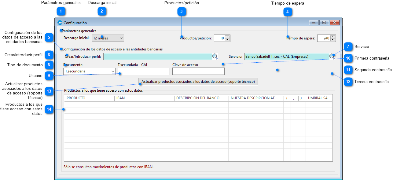 Configuración de los datos de acceso a las entidades bancarias |