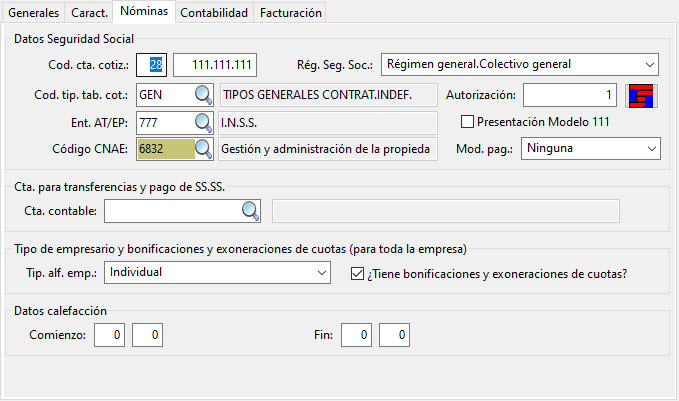 Tiene pestañas para personalizar el funcionamiento de dicha empresa/delegación, estas pestañas son: