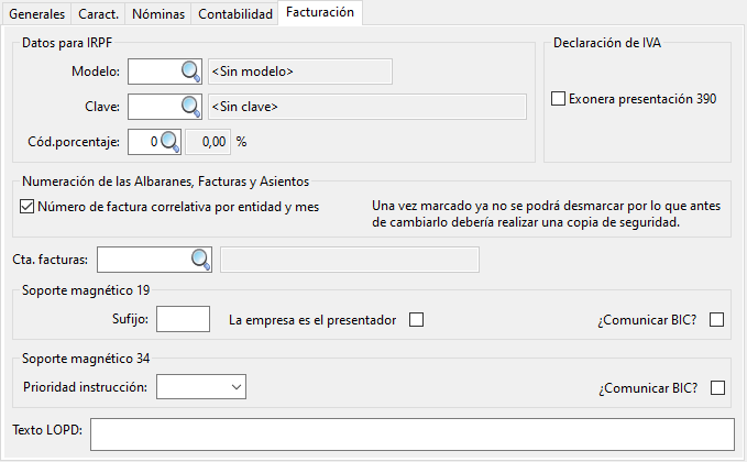 Se establecen los siguientes valores por defecto si el CIF es de persona física: Modelo 190, Clave G01 y código de porcentaje 1.