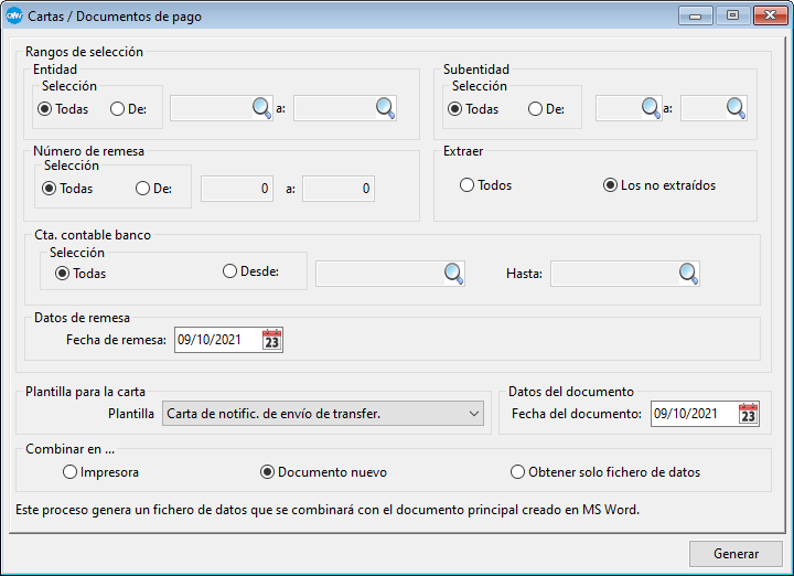 Por defecto cheques, pagarés y transferencias con los nombres CAR_XXX.DOC para cartas y DOC_XXX.DOC para los documentos (dentro del servidor), en donde XXX = CHE, PAG y TRA.