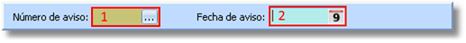 1.Número de aviso: Representa de manera única a un registro, esto es, no pueden existir dos códigos iguales en la tabla. Campo auto-calculado que se genera automáticamente en cada creación de un nuevo aviso. Para esta funcionalidad es importante tener establecido el valor del contador de avisos, en los parámetros generales, con el último aviso creado.