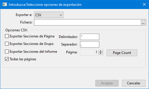 Opciones de exportación de informes