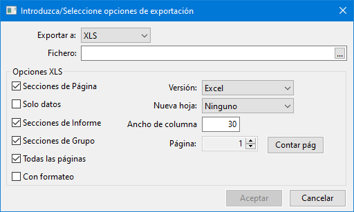 Exportación a XLS