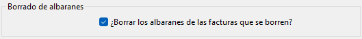 Esta opción permite indicar si se borraran los albaranes correspondientes a los recibos o facturas que se borren. Por defecto está marcada. |