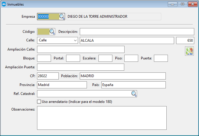 Estos datos son necesarios para completar determinada información en las distintas declaraciones económicas exigidas por Hacienda (347). Para facilitar el completar la información se han habilitado herramientas de búsqueda de la referencia catastral con servicios web o la localización del inmueble a través Google Maps.