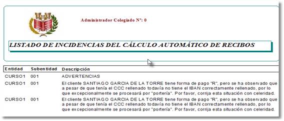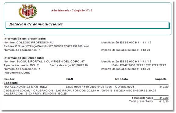 Al realizar el proceso completo saldrá en pantalla: relación de efectos a cobrar, relación de domiciliaciones, listado de incidencias si es que las hubiese.