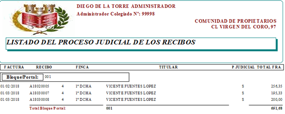 Listado del proceso judicial de los recibos