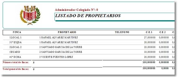 Este proceso permite obtener un listado con los datos de las fincas de los propietarios (con sus coeficientes de escritura).