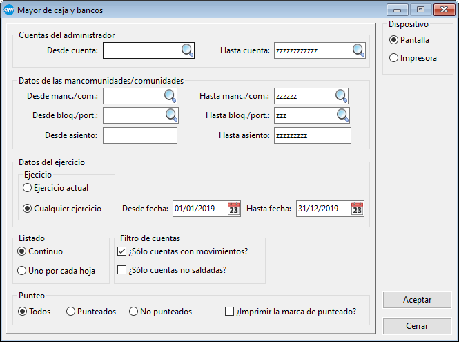 Mediante este proceso podremos obtener un extracto de los movimientos que se han producido en la caja y bancos del administrador.