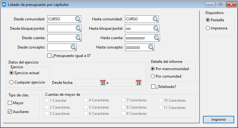 •El presupuesto puede obtenerse para un rango de mancomunidades/comunidades, bloques/portales, cuentas y conceptos.
