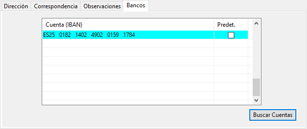 En esta pestaña podemos ver las cuentas bancarias asociadas al propietario seleccionado.
