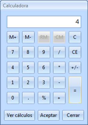 CMW dispone de una calculadora incorporada que una vez finalizado el cálculo mueve el resultado al campo desde el que ha sido llamada.