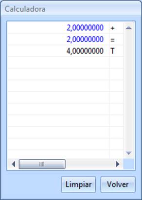 En la zona del listado de cálculos dispone de la posibilidad de eliminar el registro de cálculos pulsando en el botón “Limpiar” y de volver al teclado de la calculadora, pulsando en el botón “Volver”.
