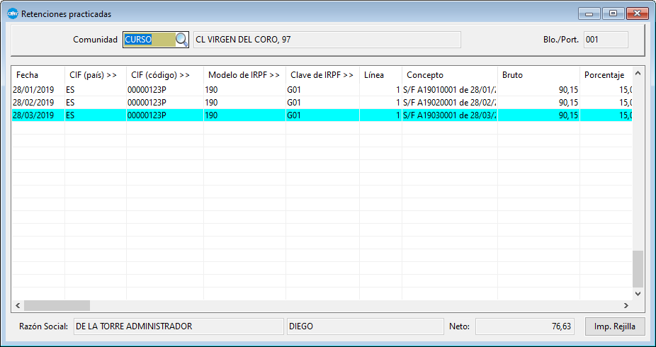 Las retenciones practicadas a profesionales, arrendamientos, etc. que se introdujeron por facturas, así como las realizadas por nóminas podrán ser visualizadas pero no modificadas por este proceso.