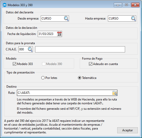 Este proceso nos permite obtener los ficheros de los modelos oficiales 303 y 390.