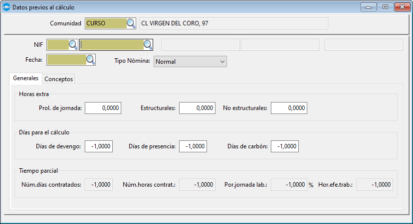 CMW > Nominas > Nóminas y SS SS > Datos previos al cálculo |