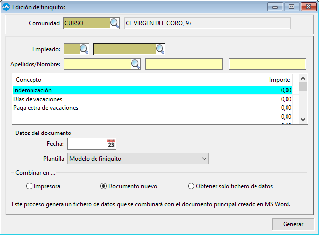 Le solicita (no los calcula) los importes del finiquito y obtiene un listado.