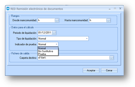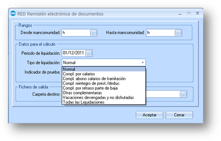 Con el Tipo de Liquidación podemos indicar que liquidación queremos enviar o también si queremos enviarlas todas juntas en un solo archivo.