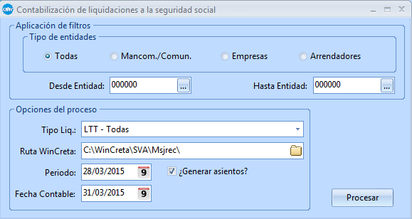 En la lista desplegable se muestran los tipos de liquidación de la SS que se pueden procesar. Si en la solicitud se selecciona "Todas" se incorporarán todos los cálculos independientemente del tipo de liquidación al que corresponda.