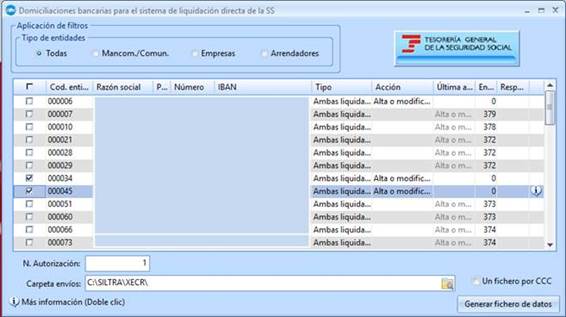 Se puede indicar el obtener un fichero por cada entidad en caso de que desee que cada una tenga su número de referencia para poder localizarla mejor en Siltra.