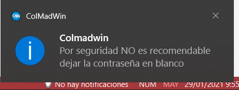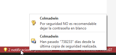 •Mensajes informativos: En el arranque y en otros procesos del programa se enviaban mensajes al usuario a través de una ventana de diálogo informativa, como por ejemplo "Por su seguridad NO es recomendable dejar la contraseña en blanco", este tipo de mensajes ha sido redireccionado al área de notificaciones de tal forma que el usuario ya no tiene que aceptar los mensajes para poder continuar. Este tipo de notificaciones, una vez leídas, desaparecen del área de notificaciones.