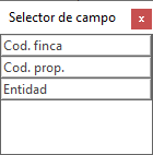 El selector de campo almacena todas las columnas que fueron añadidas en el diseño de la rejilla pero no se están mostrando actualmente. Puede devolver estas columnas al Reportcontrol arrastrándolas y soltándolas sobre la cabecera del mismo.