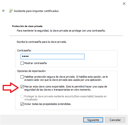 Los certificados usados en TGVI Online deberán estar instalados en el almacén de certificados del usuario del equipo que ejecuta CMW, con la clave configurada como exportable.