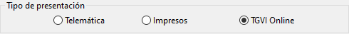 En dichas pantallas se ha añadido una opción llamada "TGVI Online" al grupo de tipo de presentación.