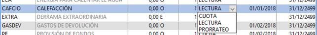 •PRORRATEO: Método nuevo de facturación, se puede seleccionar cuando el concepto está medido por contador. Se facturará siguiendo el mecanismo de tarifa plana.