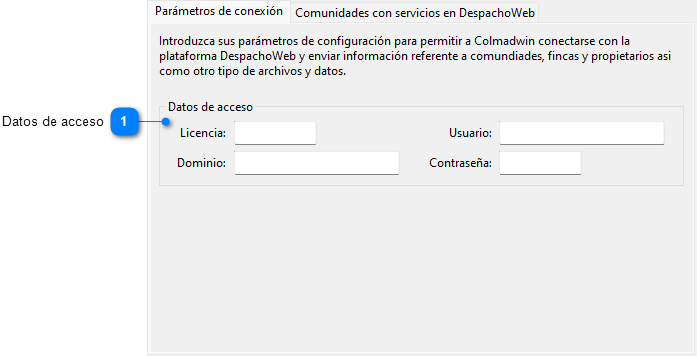 La primera pestaña de la pantalla permite introducir los parámetros de conexión de la cuenta de DespachoWeb.