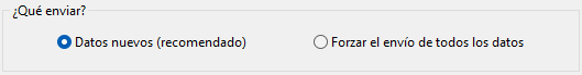 El programa realiza un control automático de cambios. Lo que da la posibilidad de enviar a la plataforma solamente los datos creados o modificados desde la última vez que se subió información. Verá esta opción marcada como recomendada en el grupo.