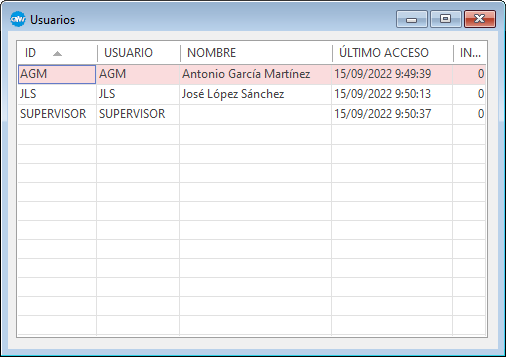 •INTENTOS: Número de intentos de acceso al sistema fallidos por parte del usuario. Se reinicia cada vez que hay un inicio de sesión correcto.