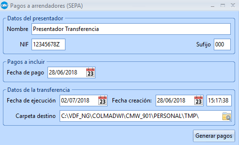 CMW > Propiedad vertical > Pagos a arrendadores > Transferencias SEPA |